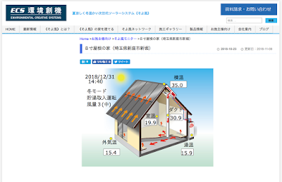 ところで、自宅「8寸屋根の家」の温熱環境が環境創機のホームページで公開されています。現時点で、全国のそよ風を搭載した家が15軒、リアルタイムで温熱環境を見比べることができます。